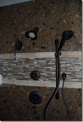 We will begin in the master bathroom. I am pretty sure that this is one of my favorite places in our house the reason our water bill is way too high!